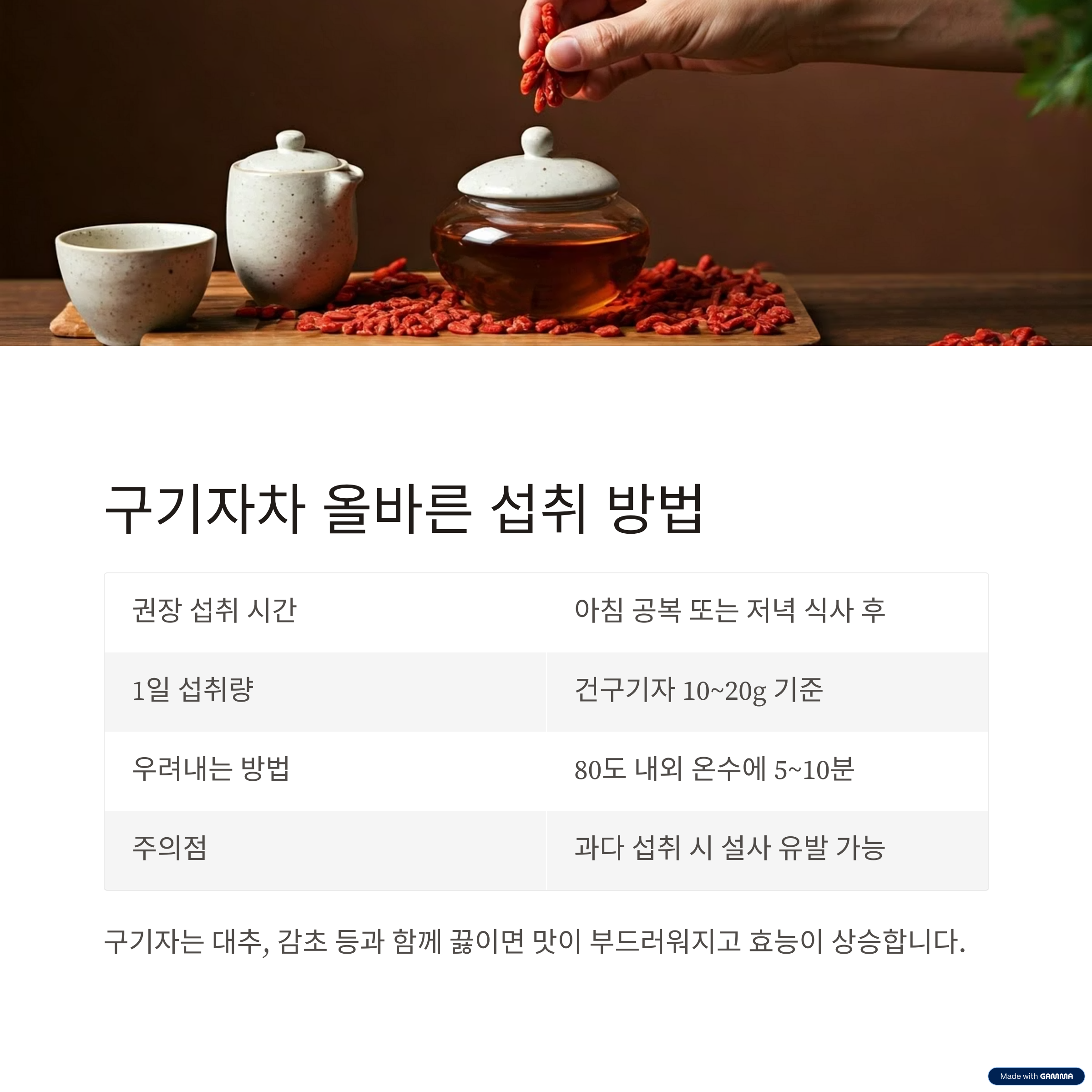 이 글에서는 구기자차의 주요 효능과 올바른 섭취 방법에 대해 구체적으로 정리해 드리겠습니다.