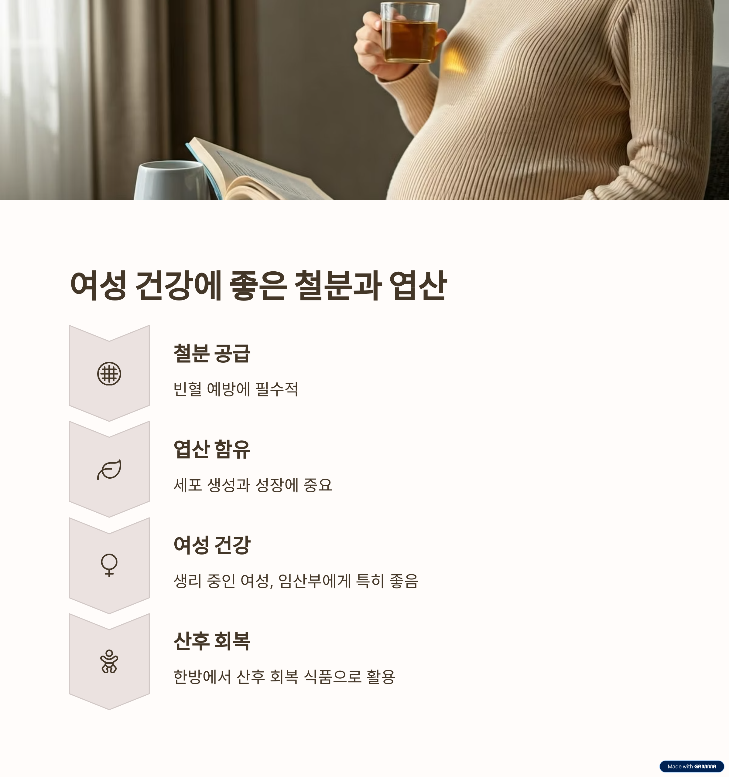 생리로 인해 철분이 자주 부족해지는 여성이나 임산부, 수유 중인 여성에게 특히 도움이 됩니다.
