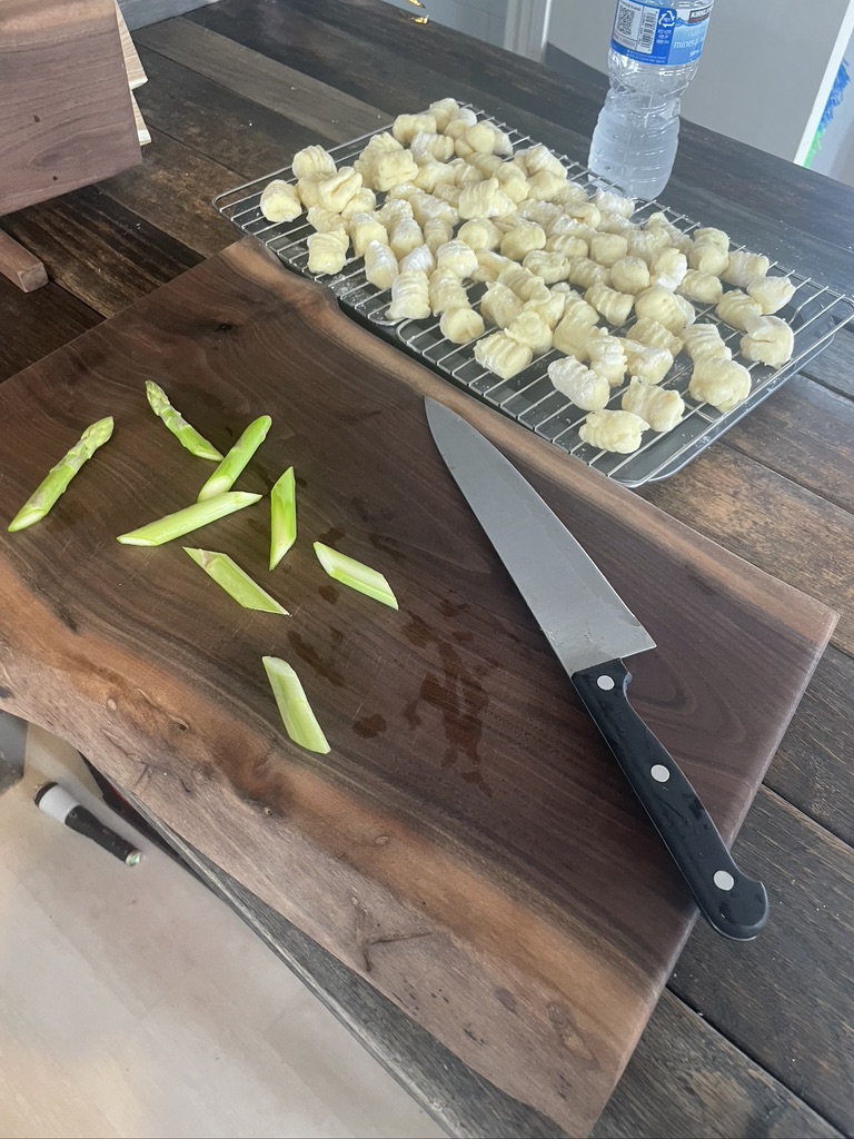 이제 뇨끼를 삶을 물을 끓이는동안에 소스에 들어갈 아스파라거스를 잘라준다.