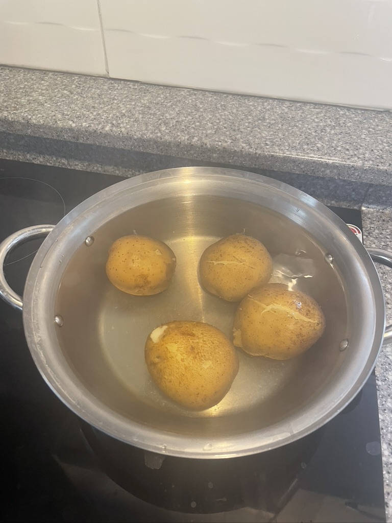 먼저 감자를 삶아준다. 끓는 물 30~40분 정도 걸렸던 것 같다. 이때 소금을 약간 넣어 속까지 간이 베일 수 있도록 한다.