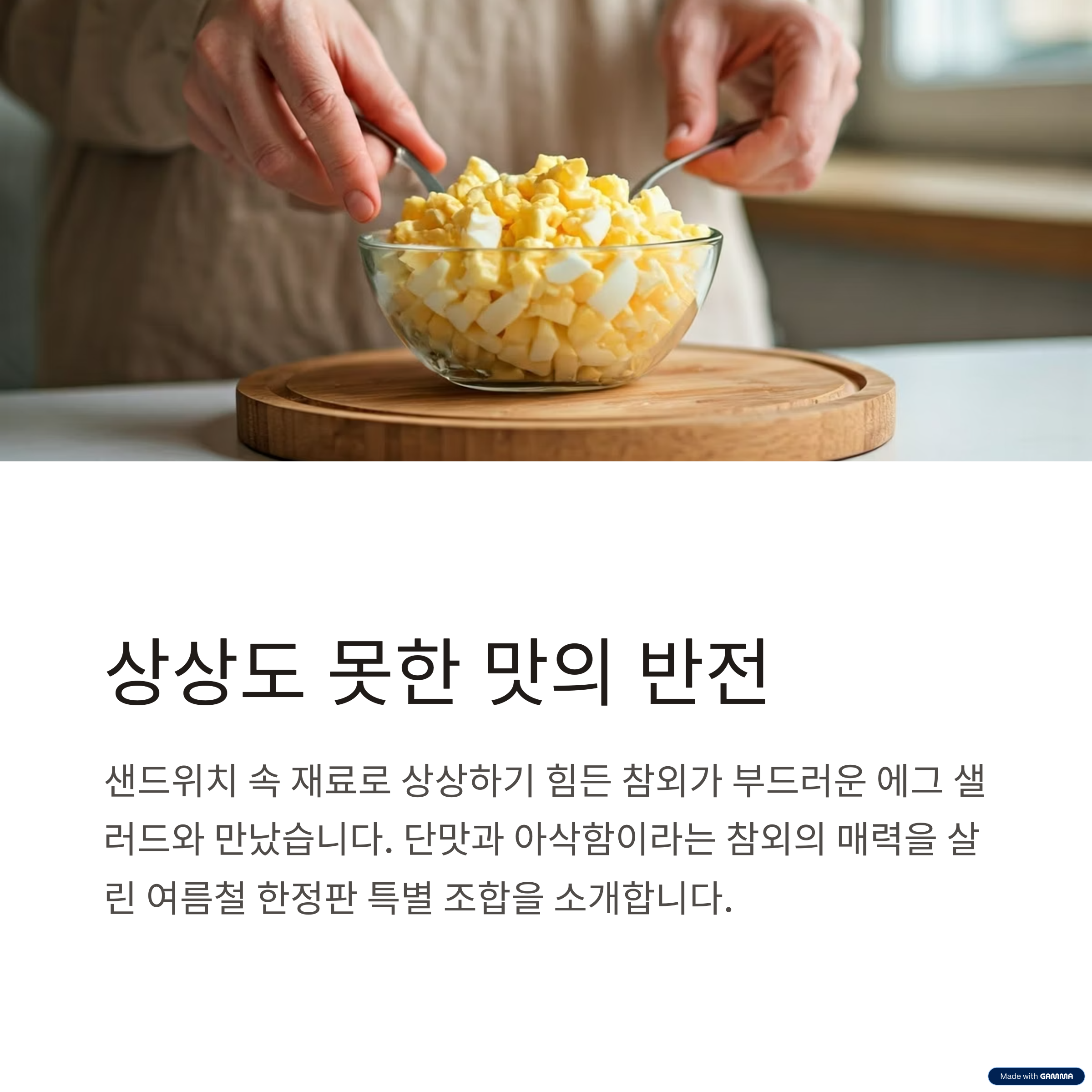 이를 활용한 샌드위치는 한정판 느낌의 색다른 경험을 제공합니다.