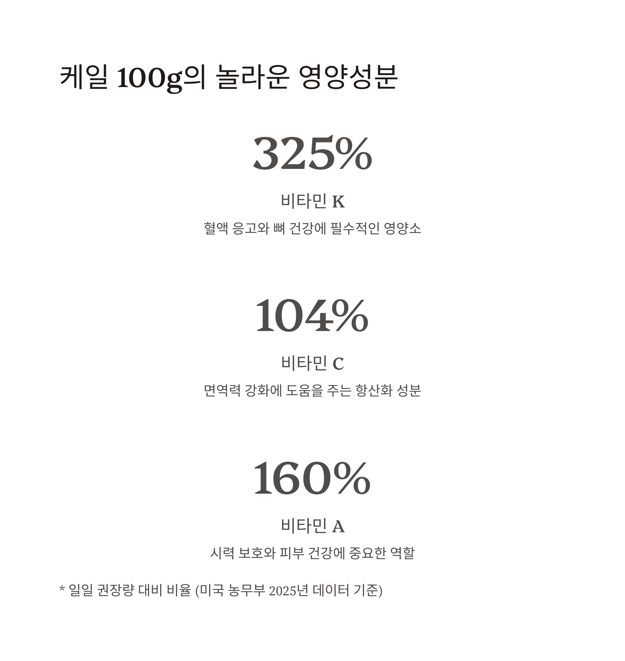 - 2024년 하버드대 연구에 따르면, 케일을 꾸준히 섭취한 그룹은 심장병 위험이 27% 감소했습니다.